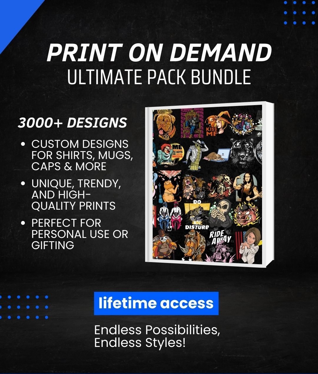 The Print on Demand Ultimate Pack Bundle is a must-have for entrepreneurs, designers, and print-on-demand business owners looking to scale their online stores. This bundle features an extensive collection of high-quality, ready-to-use designs tailored for various niches, including fashion, sports, quotes, gaming, and more.